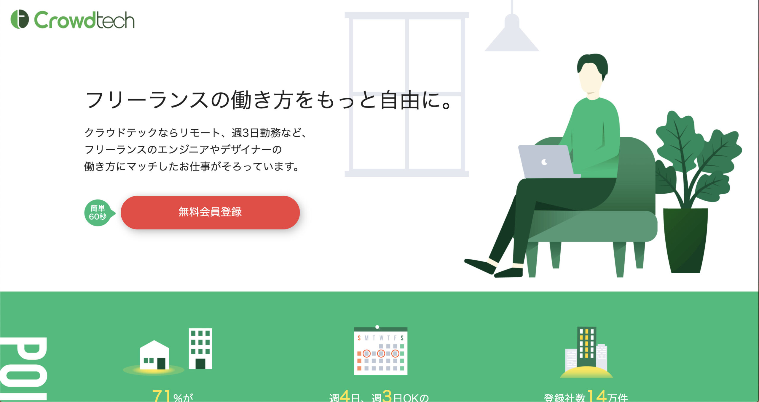 この記事では『完全未経験・独学からWeb制作で最高月収100万円超のフリーランスをしている筆者』が、最近よく耳にするようになったクラウドテック(Crowdtech)という求人サイトの評判や口コミ、メリット・デメリット、使ってみた感想、手数料、登録方法などをどこよりも詳しく解説いたします。