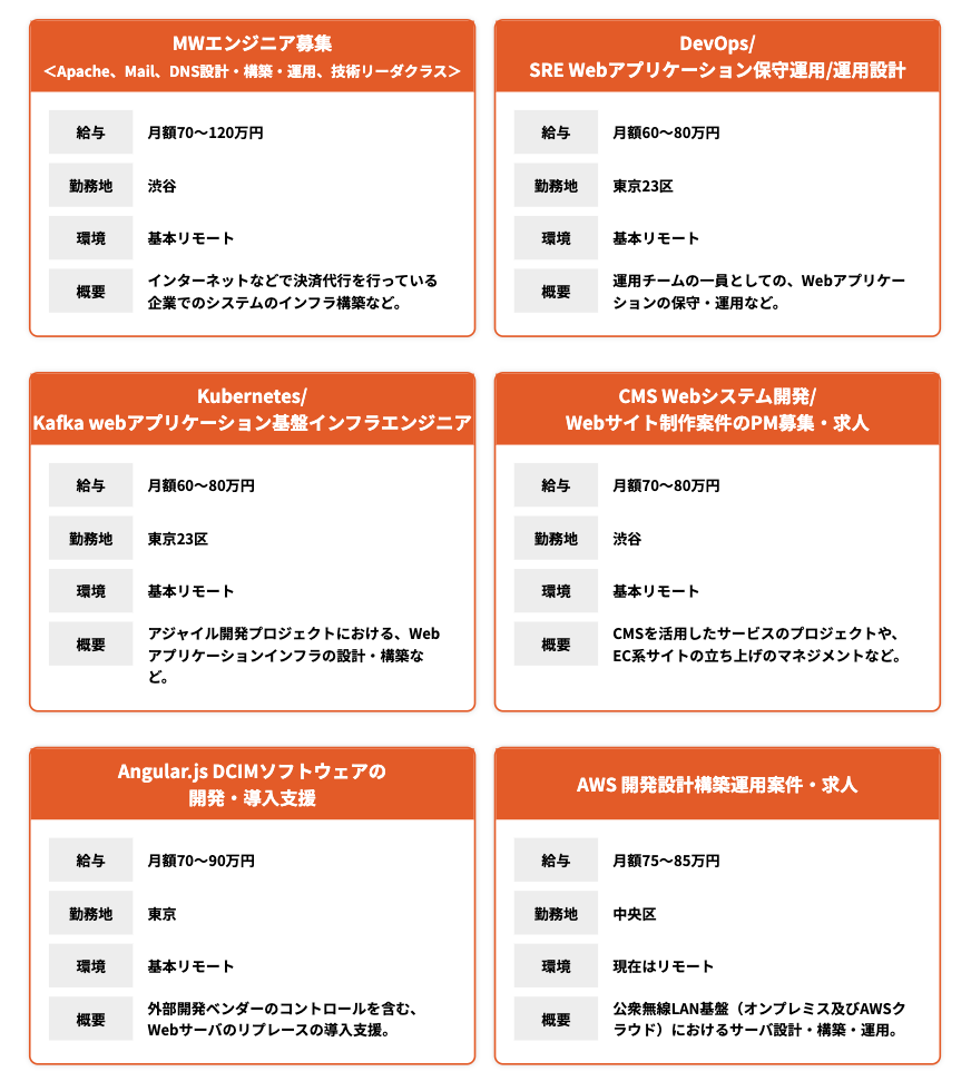 • Webエンジニアの高単価案件が多い